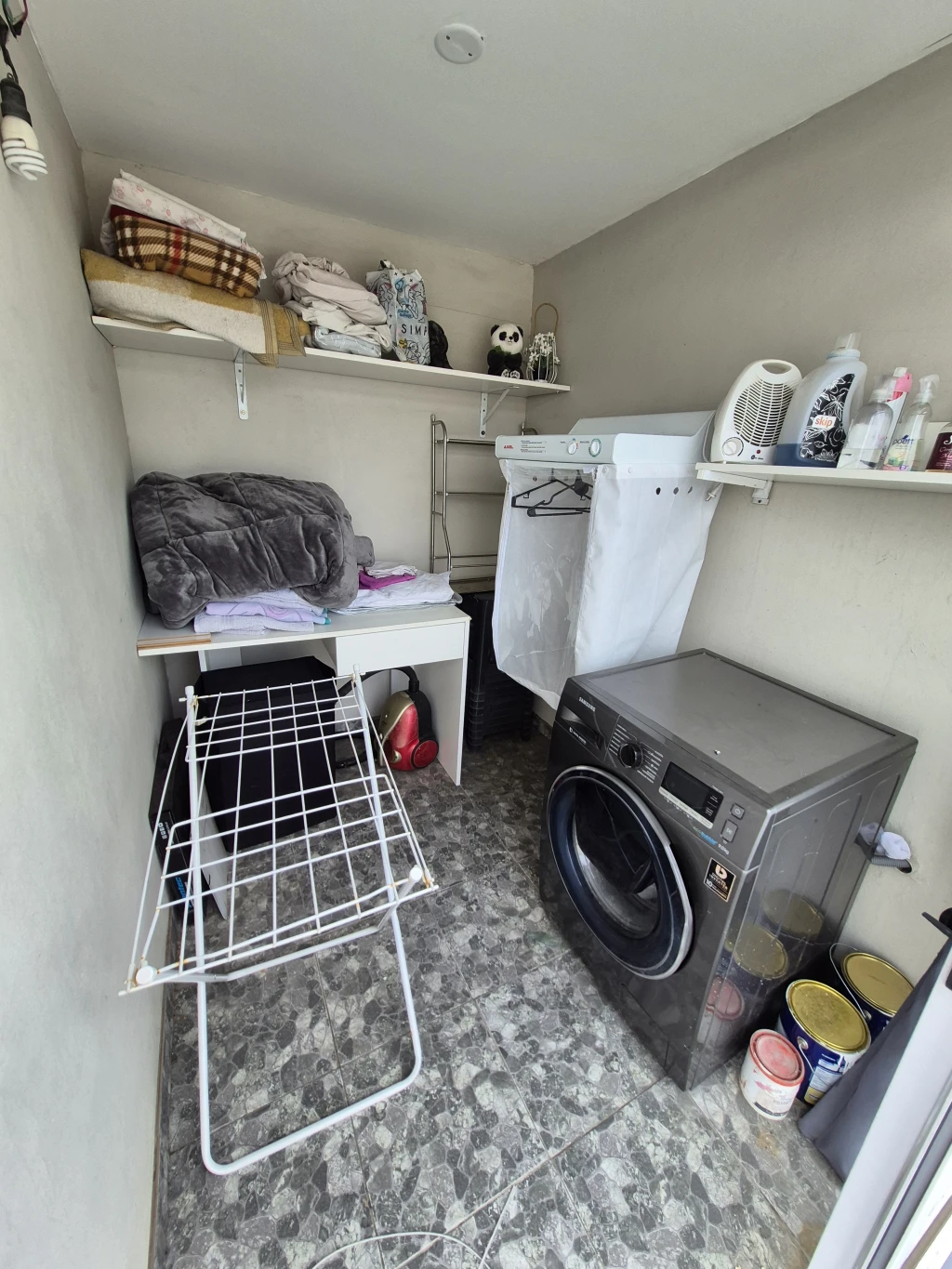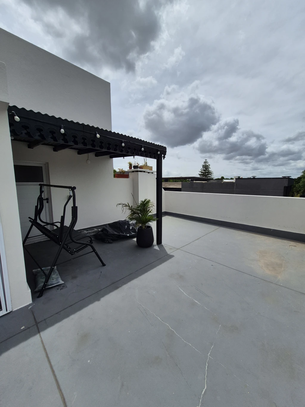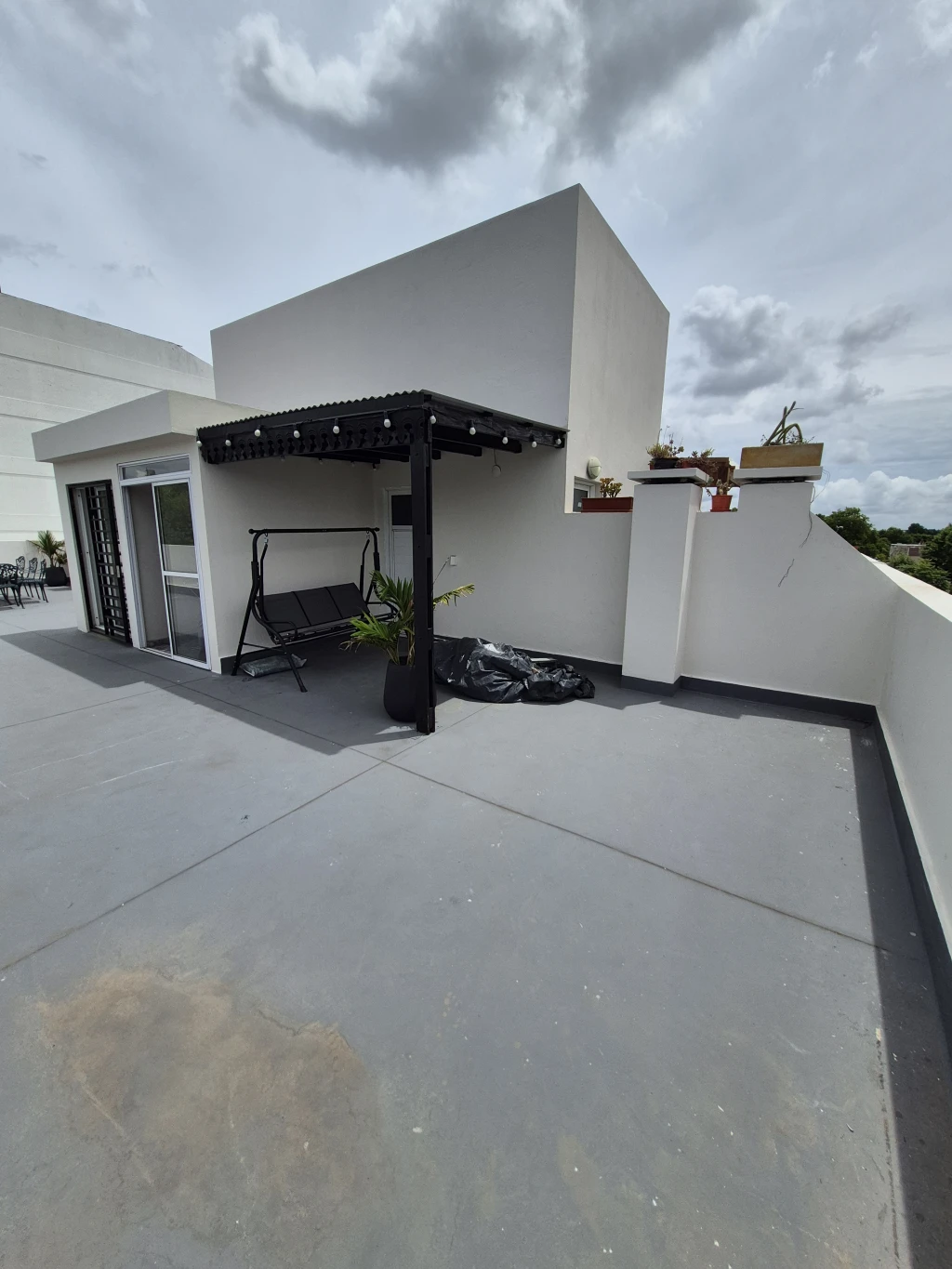 -TERRAZA PROPIA: cuenta con una terraza en planta alta de 60 m2 única en el edifico, lavadero techado con lavarropa y un secarropa, espacio con alero ideal para poner una parrilla, la terraza cuenta con una mesa de fundición de aluminio con 8 sillas, 5 banquetas de plástico y un escritorio.
