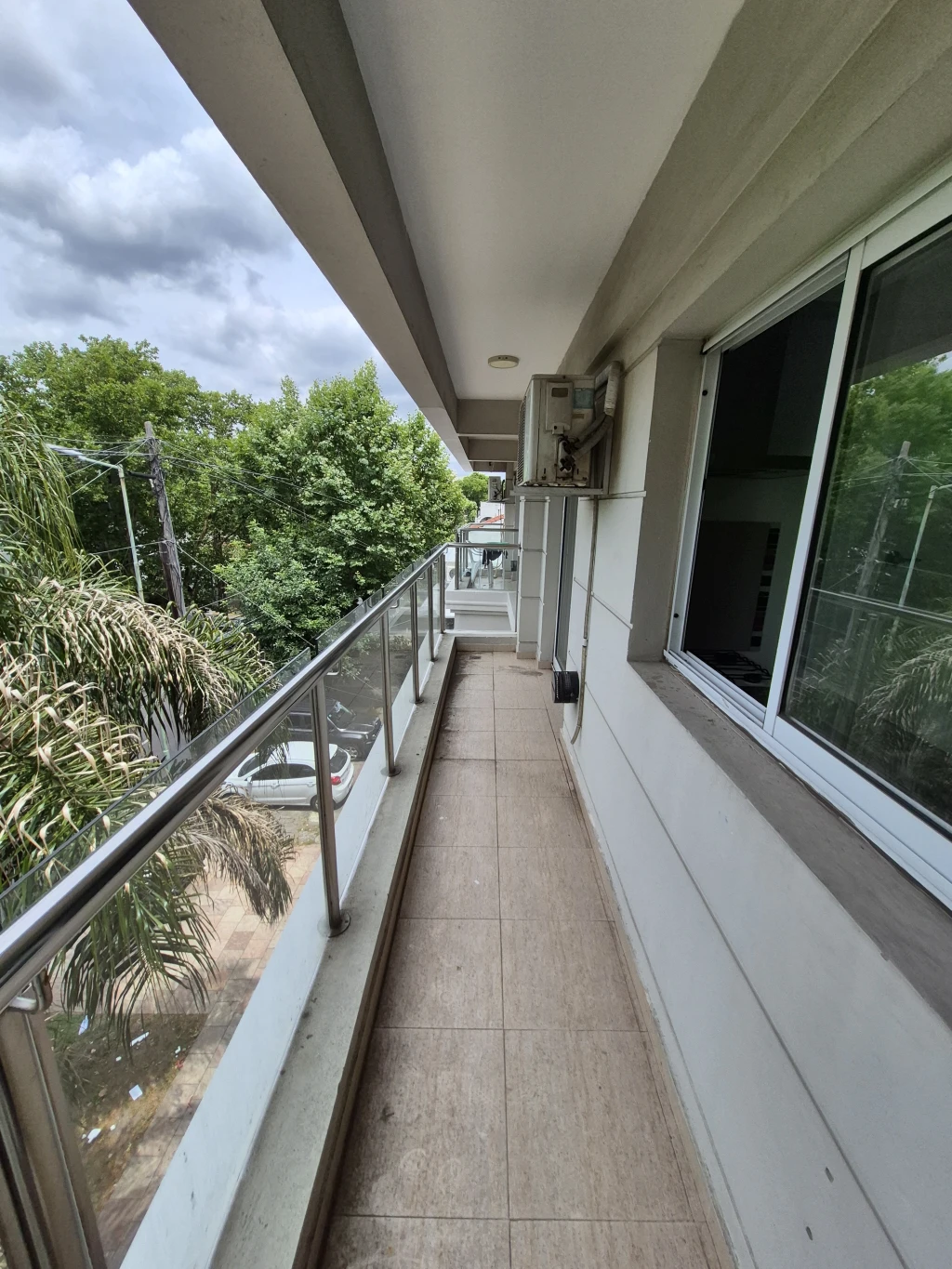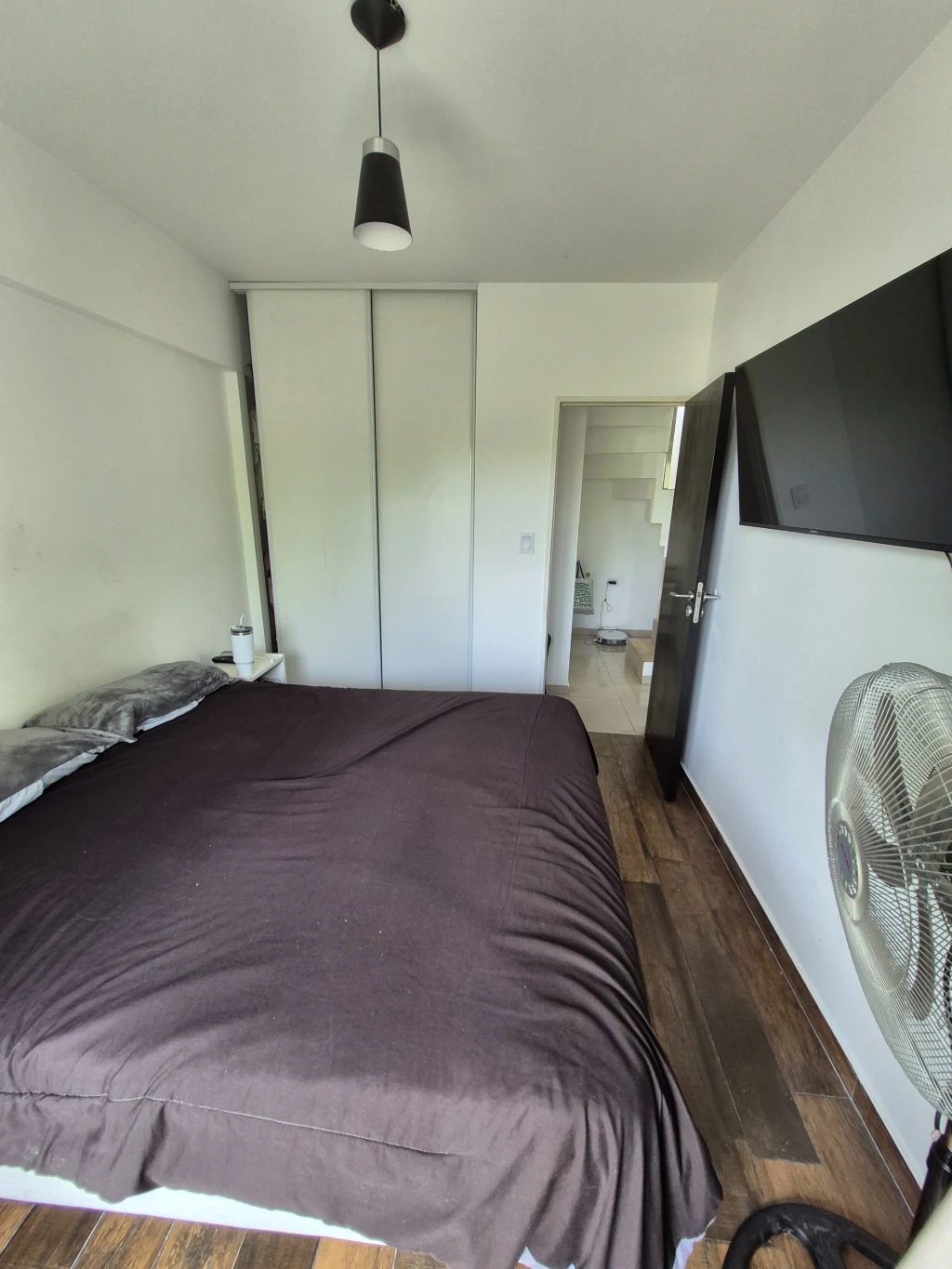 -DORMITORIO: cuenta con un somier de 2x1.60, 2 mesas de luz, placard empotrado (c/ interior), estufa tiro balanceado, Split “frio”, Smart TV de 42”, pisos de porcelanato símil madera, el dormitorio cuenta con un balcón al frente de 5 m2.