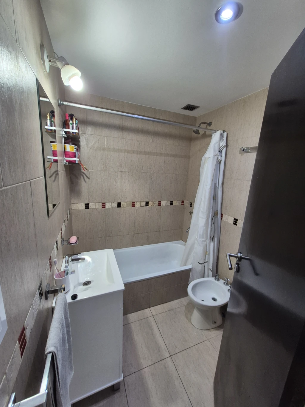 -BAÑO completo: con vanitory, grifería monocomando, accesorios de baños, estante de vidrio y hierro, c/ bañera.